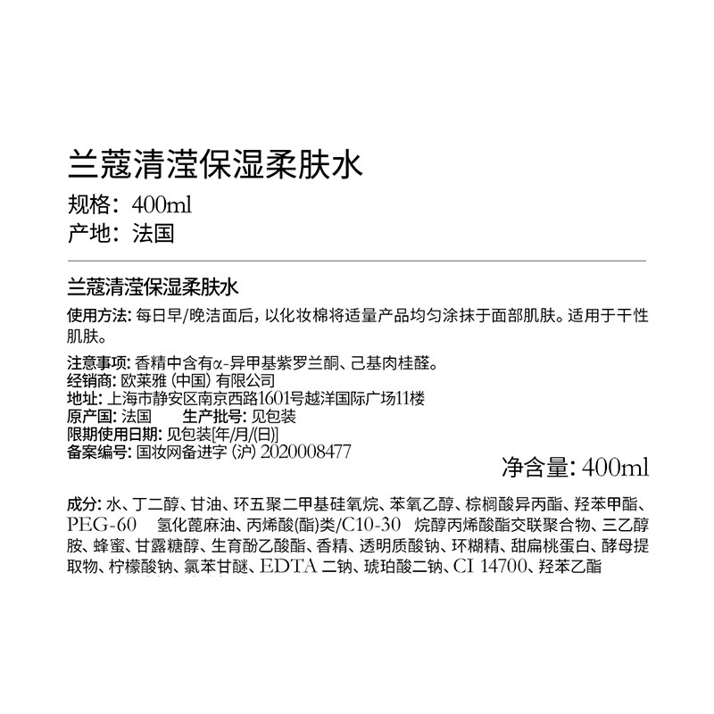 兰蔻大粉水新清滢柔肤水400ml