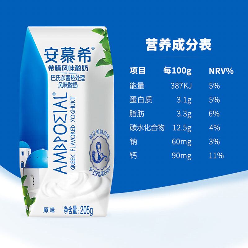 伊利安慕希希腊风味原味酸奶205g*12瓶